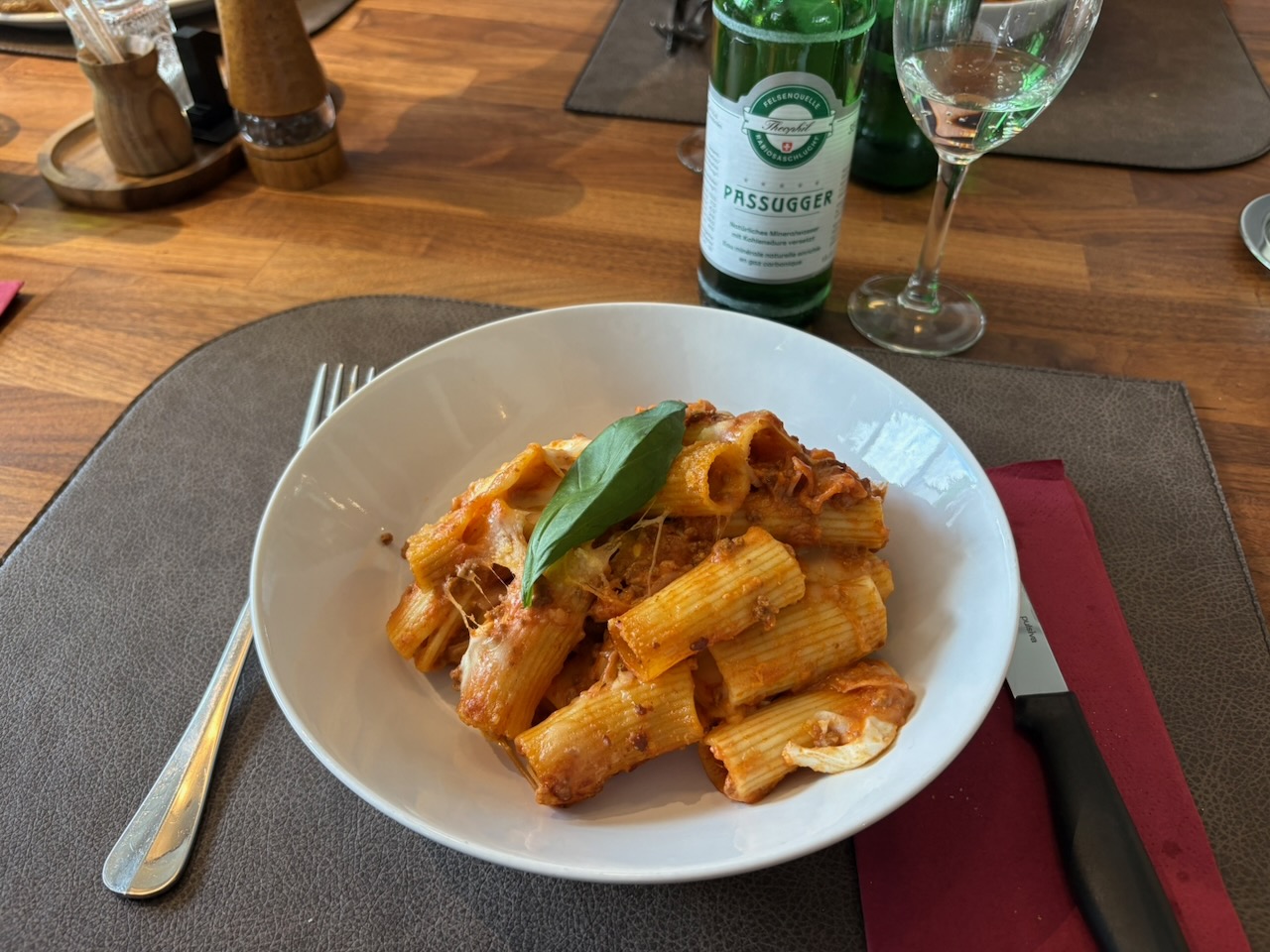 MenüsalatPasta al Forno (Hackfleisch, Ei, Schinken, Mozarella), als Menü CHF 19.50Pizza Margherita mit Bresaola, Rucolapesto, Parmesan, als Menü CHF 20.50Saltimbocca mit Safranrisotto, als Menü CHF 23.50Espresso