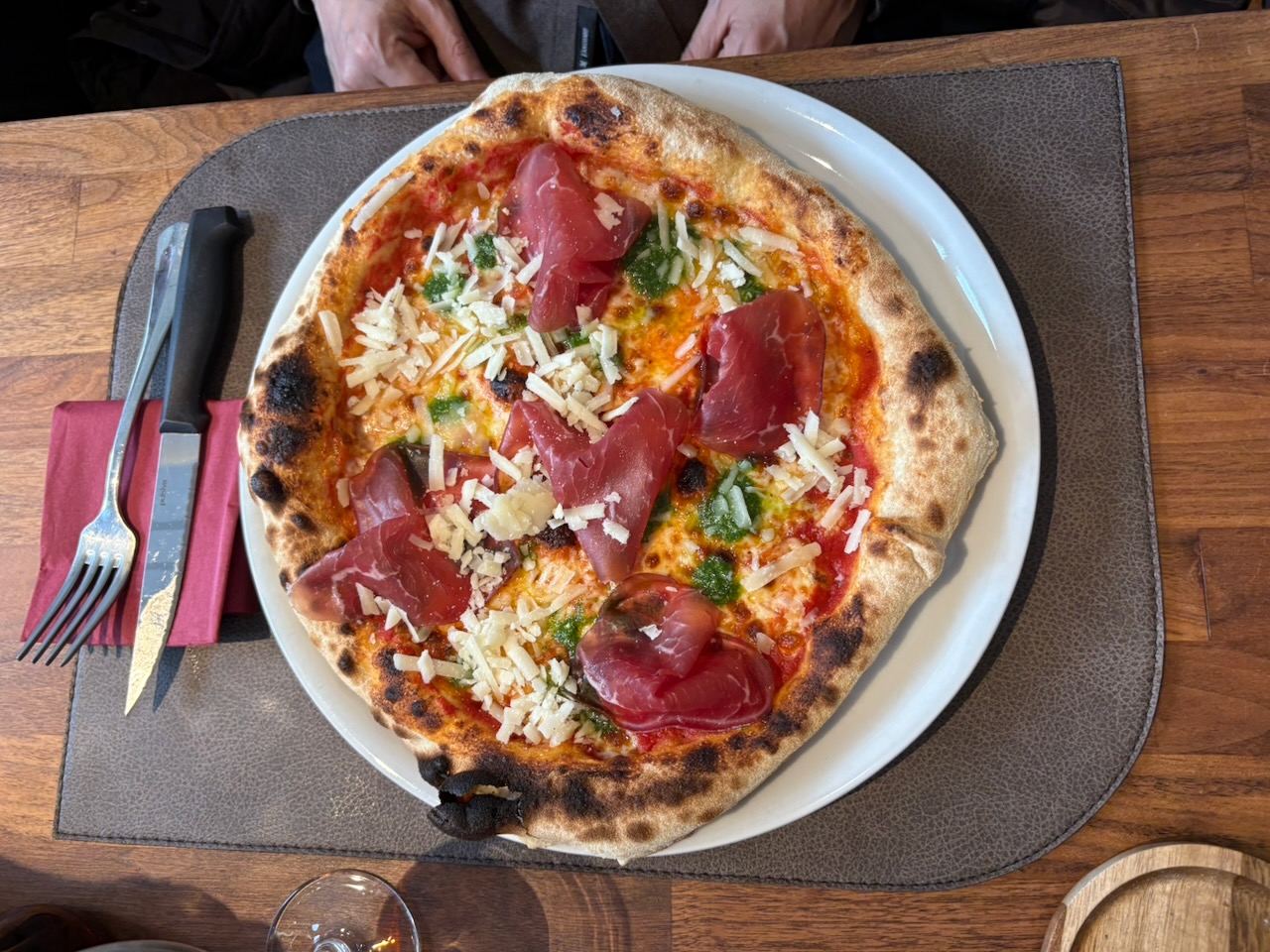MenüsalatPasta al Forno (Hackfleisch, Ei, Schinken, Mozarella), als Menü CHF 19.50Pizza Margherita mit BresaolaSaltimbocca mit Safranrisotto, als Menü CHF 23.50Espresso